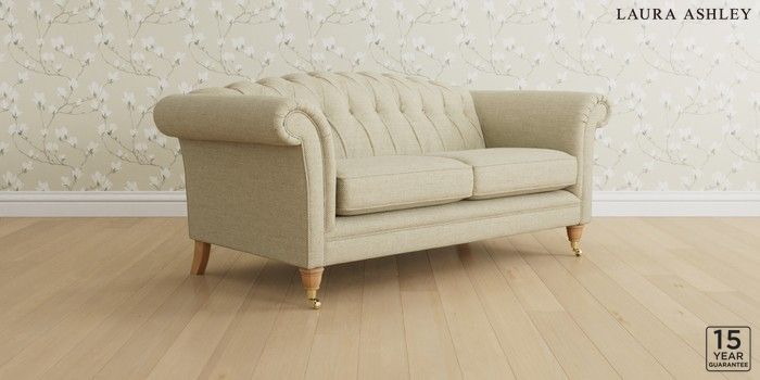6.12.1 Buy Gloucester Button Back by Laura Ashley 3 Seater Small Sofa Harley Natural Low Brass Castor - Light Oak from the Laura Ashley online shop Click here to use our website with more accessibility support, for example screen readers