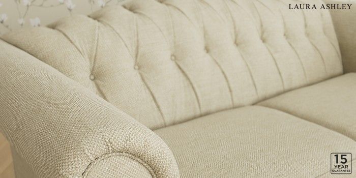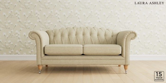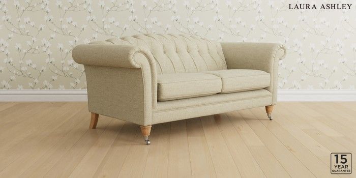 6.12.1 Buy Gloucester Button Back by Laura Ashley 3 Seater Small Sofa Harley Natural Low Chrome Castor - Light Oak from the Laura Ashley online shop Click here to use our website with more accessibility support, for example screen readers