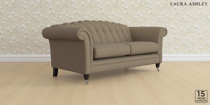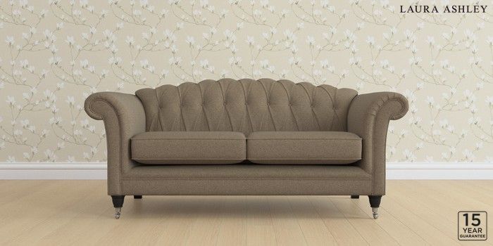 6.12.13 Buy Gloucester Button Back by Laura Ashley 3 Seater Small Sofa Harley Truffle Natural Low Chrome Castor - Black from the Laura Ashley online shop Click here to use our website with more accessibility support, for example screen readers