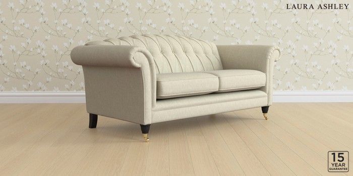 6.12.13 Buy Gloucester Button Back by Laura Ashley 3 Seater Small Sofa Kinsham Natural Low Brass Castor - Black from the Laura Ashley online shop Click here to use our website with more accessibility support, for example screen readers