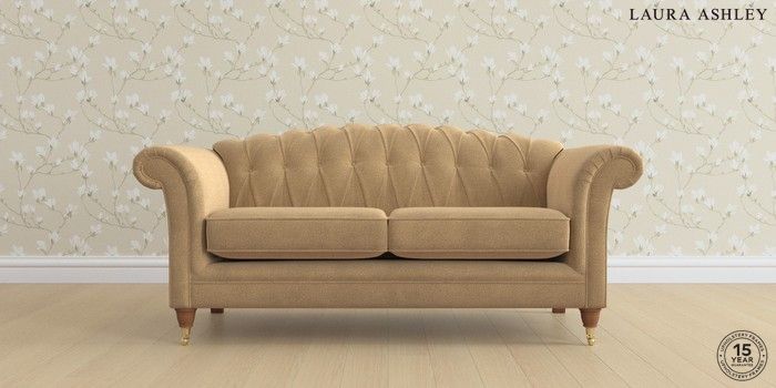 6.12.1 Buy Gloucester Button Back by Laura Ashley 3 Seater Small Sofa Lundar Chenille Caramel Natural Low Brass Castor - Teak from the Laura Ashley online shop Click here to use our website with more accessibility support, for example screen readers