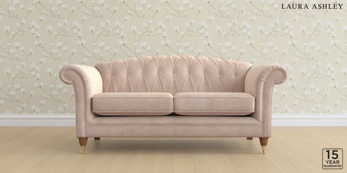 6.12.1 Buy Gloucester Button Back by Laura Ashley 3 Seater Small Sofa Orla Chalk Pink Low Brass Castor - Teak from the Laura Ashley online shop Click here to use our website with more accessibility support, for example screen readers