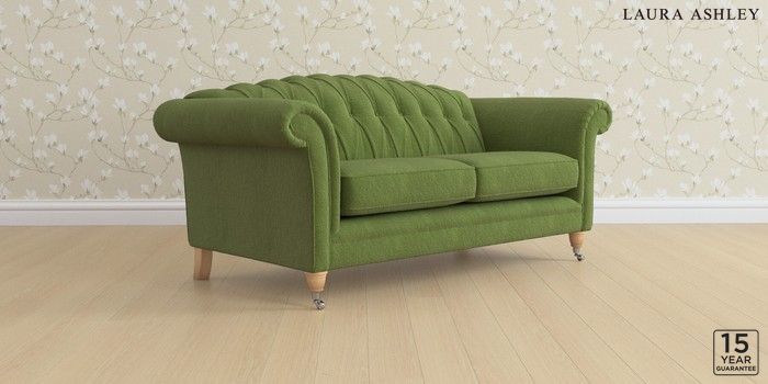 6.12.13 Buy Gloucester Button Back by Laura Ashley 3 Seater Small Sofa Tichwell Olive Green Low Chrome Castor - Light Oak from the Laura Ashley online shop Click here to use our website with more accessibility support, for example screen readers