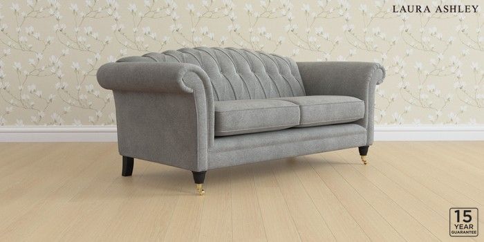 6.12.1 Buy Gloucester Button Back by Laura Ashley 3 Seater Small Sofa Wooton Dark Steel Grey Low Brass Castor - Black from the Laura Ashley online shop Click here to use our website with more accessibility support, for example screen readers