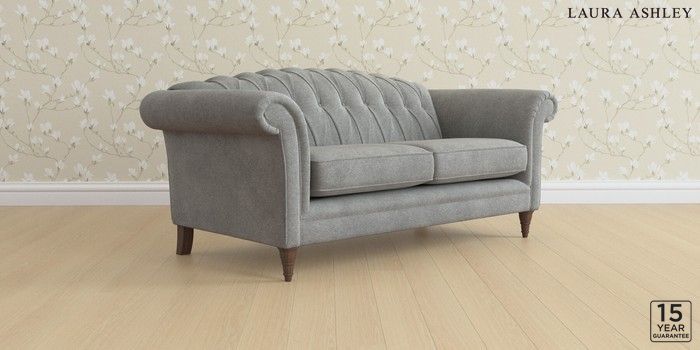 6.12.1 Buy Gloucester Button Back by Laura Ashley 3 Seater Small Sofa Wooton Dark Steel Grey Low Turned - Chestnut from the Laura Ashley online shop Click here to use our website with more accessibility support, for example screen readers