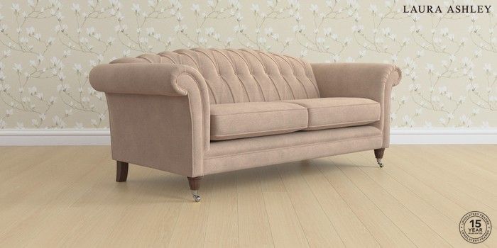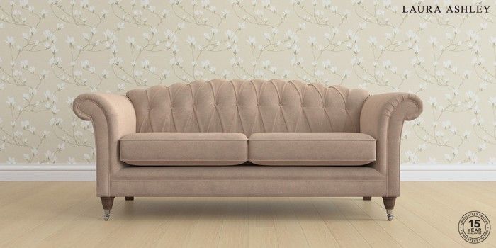6.12.1 Buy Gloucester Button Back by Laura Ashley 3 Seater Sofa Ailsworth Mink Natural Low Chrome Castor - Chestnut from the Laura Ashley online shop Click here to use our website with more accessibility support, for example screen readers