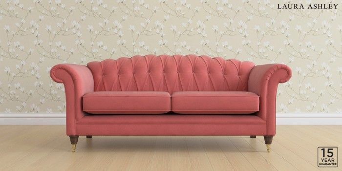 6.12.13 Buy Gloucester Button Back by Laura Ashley 3 Seater Sofa Ailsworth Old Rose Pink Low Brass Castor - Chestnut from the Laura Ashley online shop Click here to use our website with more accessibility support, for example screen readers
