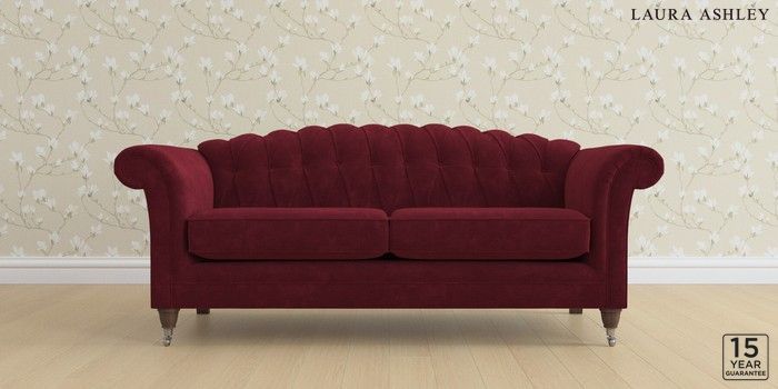 6.12.1 Buy Gloucester Button Back by Laura Ashley 3 Seater Sofa Alwyn Velvet Burgundy Red Low Chrome Castor - Chestnut from the Laura Ashley online shop Click here to use our website with more accessibility support, for example screen readers