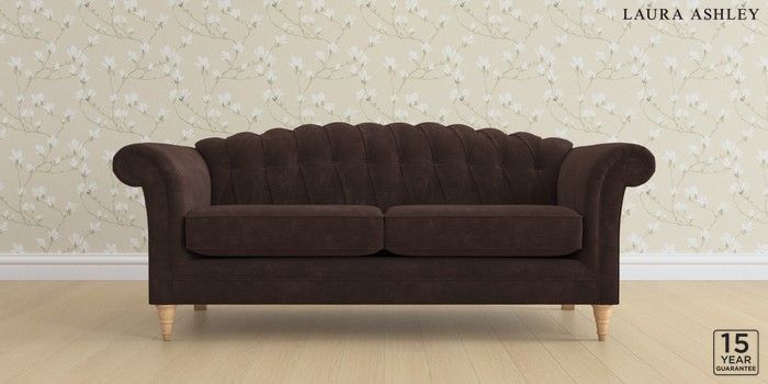 6.12.13 Buy Gloucester Button Back by Laura Ashley 3 Seater Sofa Alwyn Velvet Chocolate Brown Low Turned - Light Oak from the Laura Ashley online shop Click here to use our website with more accessibility support, for example screen readers