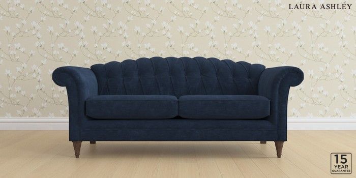 6.12.1 Buy Gloucester Button Back by Laura Ashley 3 Seater Sofa Alwyn Velvet Midnight Navy Low Turned - Chestnut from the Laura Ashley online shop Click here to use our website with more accessibility support, for example screen readers