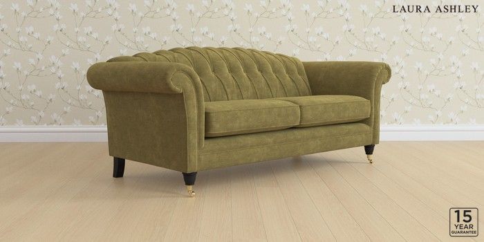 6.12.1 Buy Gloucester Button Back by Laura Ashley 3 Seater Sofa Alwyn Velvet Olive Green Low Brass Castor - Black from the Laura Ashley online shop Click here to use our website with more accessibility support, for example screen readers