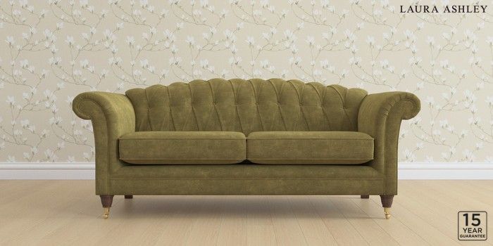 6.12.1 Buy Gloucester Button Back by Laura Ashley 3 Seater Sofa Alwyn Velvet Olive Green Low Brass Castor - Chestnut from the Laura Ashley online shop Click here to use our website with more accessibility support, for example screen readers
