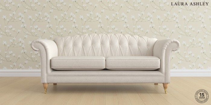 7.2.6 Buy Gloucester Button Back by Laura Ashley 3 Seater Sofa Anneliese Oyster Natural Low Brass Castor - Light Oak from the Laura Ashley online shop Click here to use our website with more accessibility support, for example screen readers
