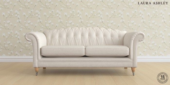 7.2.6 Buy Gloucester Button Back by Laura Ashley 3 Seater Sofa Anneliese Oyster Natural Low Chrome Castor - Light Oak from the Laura Ashley online shop Click here to use our website with more accessibility support, for example screen readers