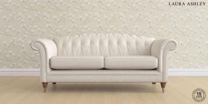 7.2.6 Buy Gloucester Button Back by Laura Ashley 3 Seater Sofa Anneliese Oyster Natural Low Chrome Castor - Teak from the Laura Ashley online shop Click here to use our website with more accessibility support, for example screen readers