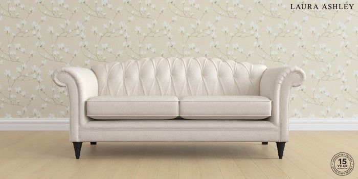 7.2.6 Buy Gloucester Button Back by Laura Ashley 3 Seater Sofa Anneliese Oyster Natural Low Turned - Black from the Laura Ashley online shop Click here to use our website with more accessibility support, for example screen readers