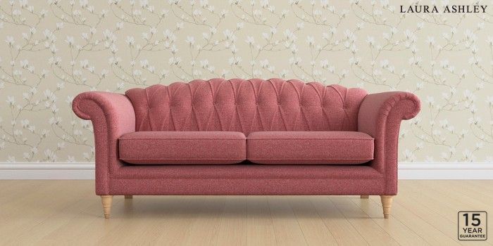 6.12.13 Buy Gloucester Button Back by Laura Ashley 3 Seater Sofa Anneliese Rosewood Red Low Turned - Light Oak from the Laura Ashley online shop Click here to use our website with more accessibility support, for example screen readers