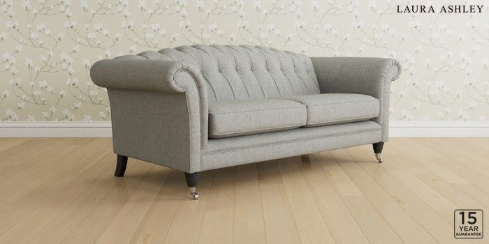 7.0.3 Buy Gloucester Button Back by Laura Ashley 3 Seater Sofa Anneliese Steel Grey Low Chrome Castor - Black from the Laura Ashley online shop Click here to use our website with more accessibility support, for example screen readers