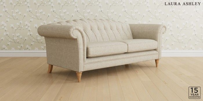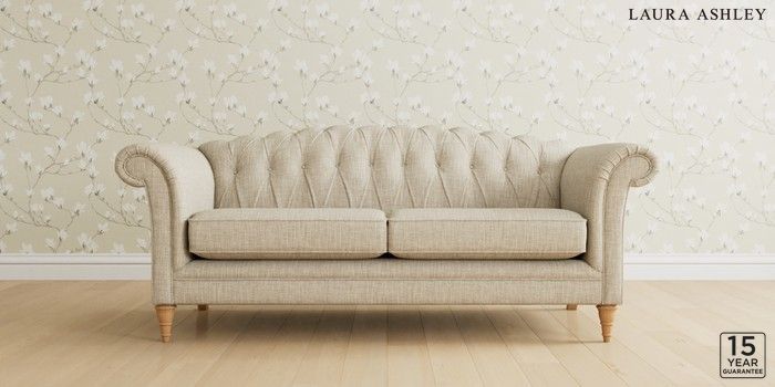6.12.13 Buy Gloucester Button Back by Laura Ashley 3 Seater Sofa Bainton Natural Low Turned - Light Oak from the Laura Ashley online shop Click here to use our website with more accessibility support, for example screen readers