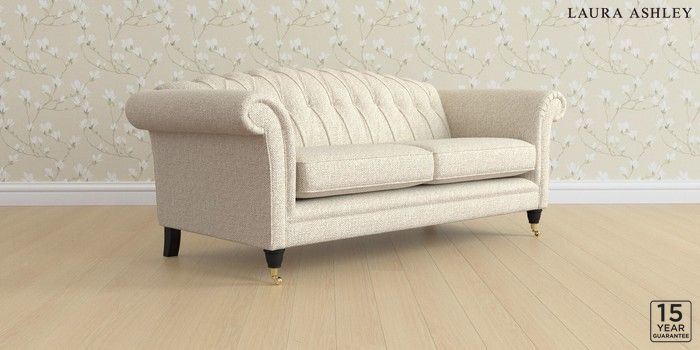 6.12.13 Buy Gloucester Button Back by Laura Ashley 3 Seater Sofa Borwick Natural Low Brass Castor - Black from the Laura Ashley online shop Click here to use our website with more accessibility support, for example screen readers