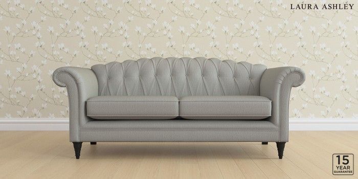 6.12.1 Buy Gloucester Button Back by Laura Ashley 3 Seater Sofa Edwin Herringbone Pale Steel Grey Low Turned - Black from the Laura Ashley online shop Click here to use our website with more accessibility support, for example screen readers