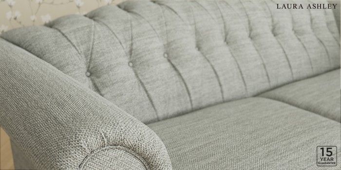 6.12.13 Buy Gloucester Button Back by Laura Ashley 3 Seater Sofa Harley Dove Grey Low Chrome Castor - Chestnut from the Laura Ashley online shop Click here to use our website with more accessibility support, for example screen readers