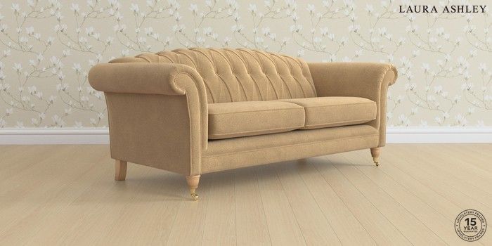 6.12.1 Buy Gloucester Button Back by Laura Ashley 3 Seater Sofa Lundar Chenille Caramel Natural Low Brass Castor - Light Oak from the Laura Ashley online shop Click here to use our website with more accessibility support, for example screen readers
