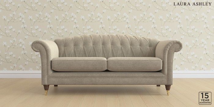 6.12.13 Buy Gloucester Button Back by Laura Ashley 3 Seater Sofa Lundar Chenille Truffle Natural Low Brass Castor - Chestnut from the Laura Ashley online shop Click here to use our website with more accessibility support, for example screen readers