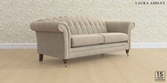 6.12.13 Buy Gloucester Button Back by Laura Ashley 3 Seater Sofa Lundar Chenille Truffle Natural Low Chrome Castor - Chestnut from the Laura Ashley online shop Click here to use our website with more accessibility support, for example screen readers