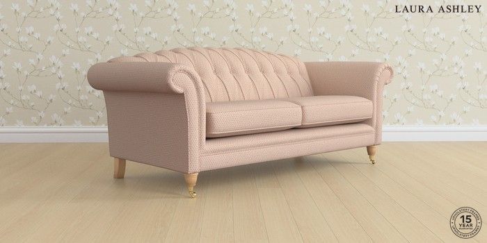 6.12.1 Buy Gloucester Button Back by Laura Ashley 3 Seater Sofa Melbreak Geo Chalk Pink Low Brass Castor - Light Oak from the Laura Ashley online shop Click here to use our website with more accessibility support, for example screen readers
