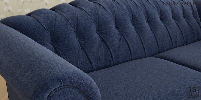 6.12.13 Buy Gloucester Button Back by Laura Ashley 3 Seater Sofa Nantmor Midnight Navy Low Chrome Castor - Light Oak from the Laura Ashley online shop Click here to use our website with more accessibility support, for example screen readers