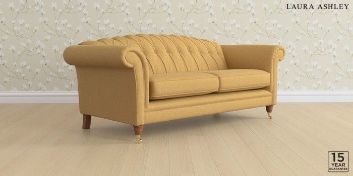 7.0.3 Buy Gloucester Button Back by Laura Ashley 3 Seater Sofa Peyton Ochre Yellow Low Brass Castor - Teak from the Laura Ashley online shop Click here to use our website with more accessibility support, for example screen readers