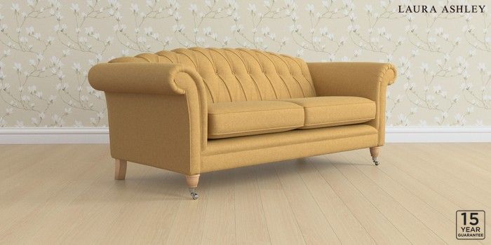 6.12.13 Buy Gloucester Button Back by Laura Ashley 3 Seater Sofa Peyton Ochre Yellow Low Chrome Castor - Light Oak from the Laura Ashley online shop Click here to use our website with more accessibility support, for example screen readers