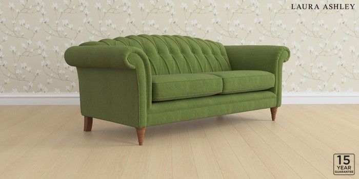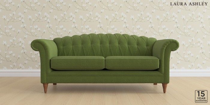 6.12.13 Buy Gloucester Button Back by Laura Ashley 3 Seater Sofa Tichwell Olive Green Low Turned - Teak from the Laura Ashley online shop Click here to use our website with more accessibility support, for example screen readers