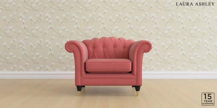 6.12.1 Buy Gloucester Button Back by Laura Ashley Armchair Ailsworth Old Rose Pink Low Brass Castor - Black from the Laura Ashley online shop Click here to use our website with more accessibility support, for example screen readers