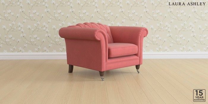 6.12.13 Buy Gloucester Button Back by Laura Ashley Armchair Ailsworth Old Rose Pink Low Chrome Castor - Chestnut from the Laura Ashley online shop Click here to use our website with more accessibility support, for example screen readers