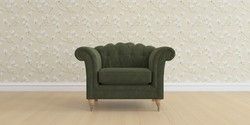 6.12.13 Buy Gloucester Button Back by Laura Ashley Armchair Alwyn Velvet Ivy Green Low Chrome Castor - Light Oak from the Laura Ashley online shop Click here to use our website with more accessibility support, for example screen readers
