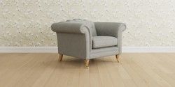 6.12.13 Buy Gloucester Button Back by Laura Ashley Armchair Anneliese Steel Grey Low Brass Castor - Light Oak from the Laura Ashley online shop Click here to use our website with more accessibility support, for example screen readers