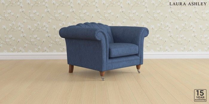 6.12.13 Buy Gloucester Button Back by Laura Ashley Armchair Bainton Midnight Navy Low Chrome Castor - Teak from the Laura Ashley online shop Click here to use our website with more accessibility support, for example screen readers