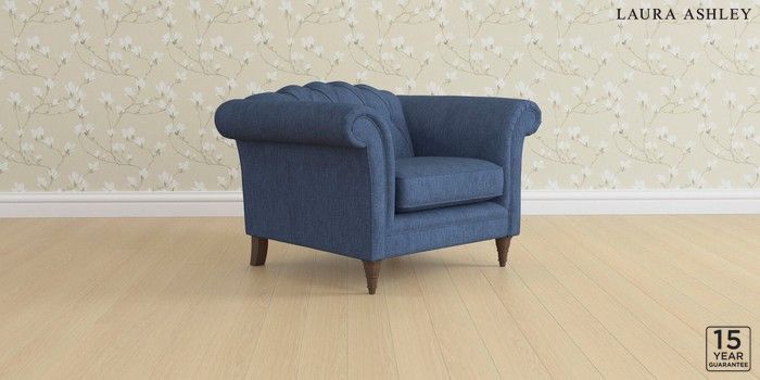 6.12.1 Buy Gloucester Button Back by Laura Ashley Armchair Bainton Midnight Navy Low Turned - Chestnut from the Laura Ashley online shop Click here to use our website with more accessibility support, for example screen readers