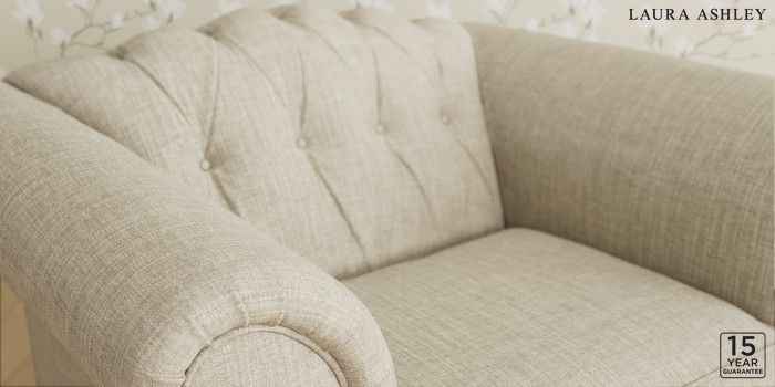 6.12.1 Buy Gloucester Button Back by Laura Ashley Armchair Bainton Natural Low Brass Castor - Chestnut from the Laura Ashley online shop Click here to use our website with more accessibility support, for example screen readers