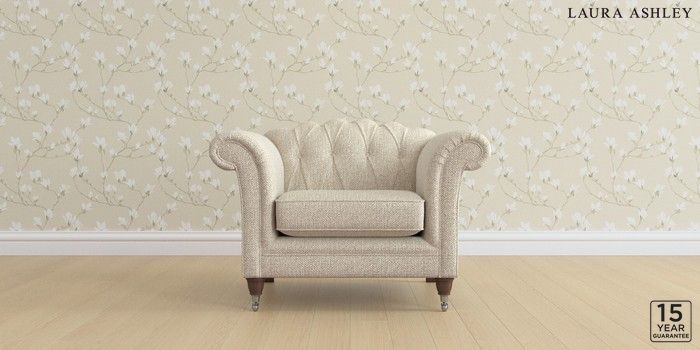 6.12.13 Buy Gloucester Button Back by Laura Ashley Armchair Borwick Natural Low Chrome Castor - Chestnut from the Laura Ashley online shop Click here to use our website with more accessibility support, for example screen readers
