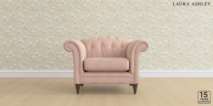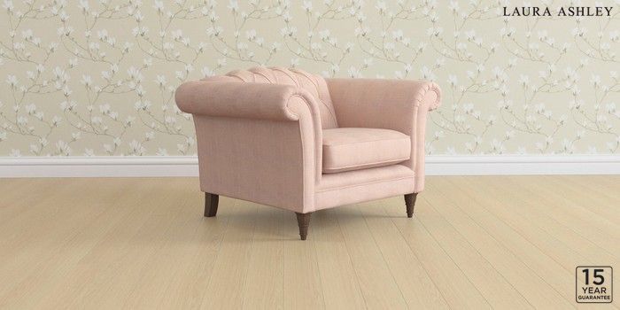 6.12.1 Buy Gloucester Button Back by Laura Ashley Armchair Edwin Chenille Blush Pink Low Turned - Chestnut from the Laura Ashley online shop Click here to use our website with more accessibility support, for example screen readers