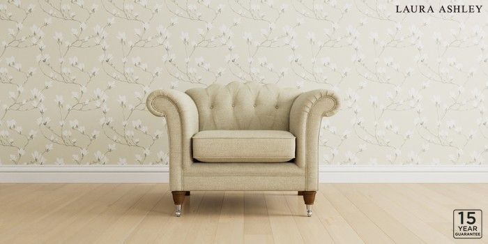 6.12.1 Buy Gloucester Button Back by Laura Ashley Armchair Harley Natural Low Chrome Castor - Teak from the Laura Ashley online shop Click here to use our website with more accessibility support, for example screen readers