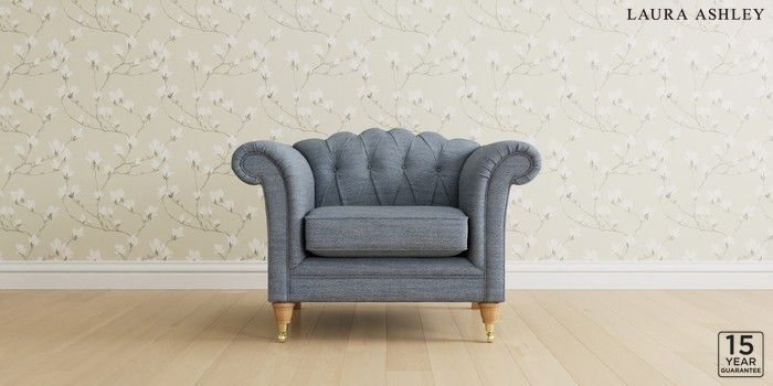 6.12.13 Buy Gloucester Button Back by Laura Ashley Armchair Harley Seaspray Blue Low Brass Castor - Light Oak from the Laura Ashley online shop Click here to use our website with more accessibility support, for example screen readers