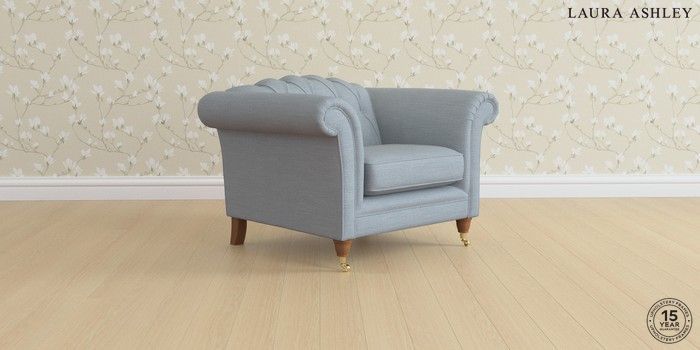 6.12.1 Buy Gloucester Button Back by Laura Ashley Armchair Kinsham Seaspray Blue Low Brass Castor - Teak from the Laura Ashley online shop Click here to use our website with more accessibility support, for example screen readers