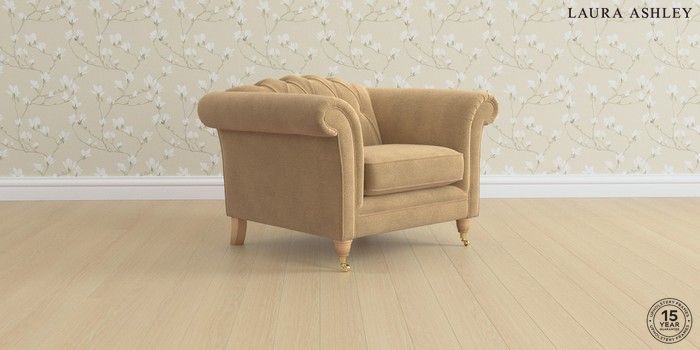 6.12.1 Buy Gloucester Button Back by Laura Ashley Armchair Lundar Chenille Caramel Natural Low Brass Castor - Light Oak from the Laura Ashley online shop Click here to use our website with more accessibility support, for example screen readers