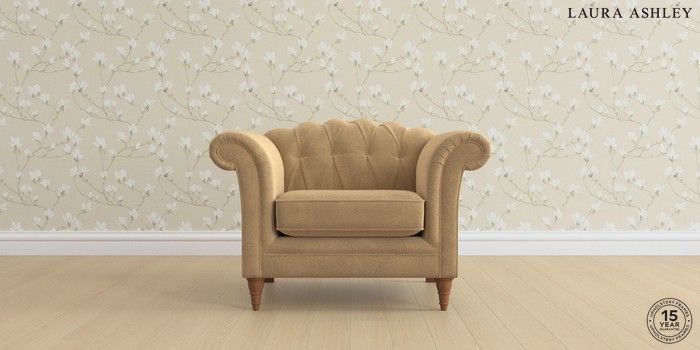 6.12.1 Buy Gloucester Button Back by Laura Ashley Armchair Lundar Chenille Caramel Natural Low Turned - Teak from the Laura Ashley online shop Click here to use our website with more accessibility support, for example screen readers