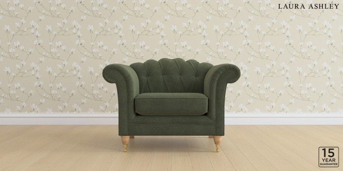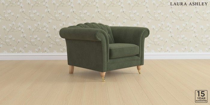 7.0.3 Buy Gloucester Button Back by Laura Ashley Armchair Lundar Chenille Ivy Green Low Brass Castor - Light Oak from the Laura Ashley online shop Click here to use our website with more accessibility support, for example screen readers