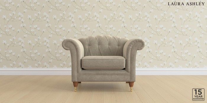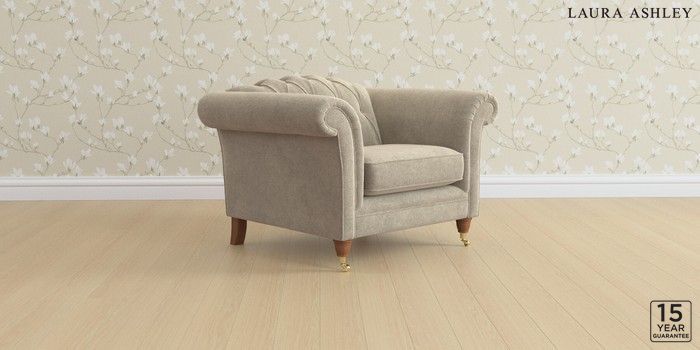 6.12.1 Buy Gloucester Button Back by Laura Ashley Armchair Lundar Chenille Truffle Natural Low Brass Castor - Teak from the Laura Ashley online shop Click here to use our website with more accessibility support, for example screen readers
